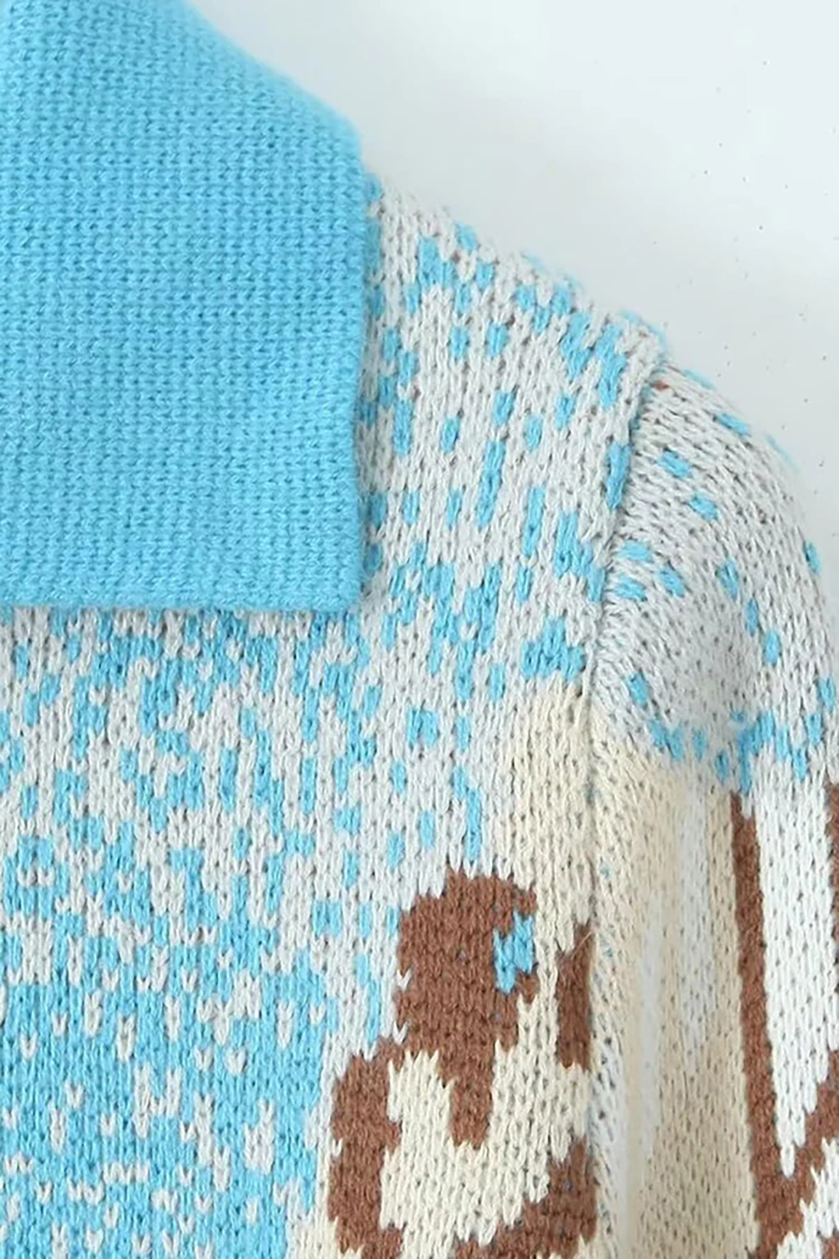 Lovely jacquard cardigans will never let you down, especially when polish meets pops of color. Featuring a spread collar and long sleeves, the multicolored collared cardigan for women is fastened with a button-up closure at the front, perfect for those colder days, like fall and winter. The boxy silhouette of this button-front sweater lends the sophistication of a jacket. The ribbed edges on the cuffs and hemline provide a soft hand feel for everyday wear. A college style addition to your boutique collection, this kitschy knitwear can be worn with pants and sneakers for a comfortable outfit.