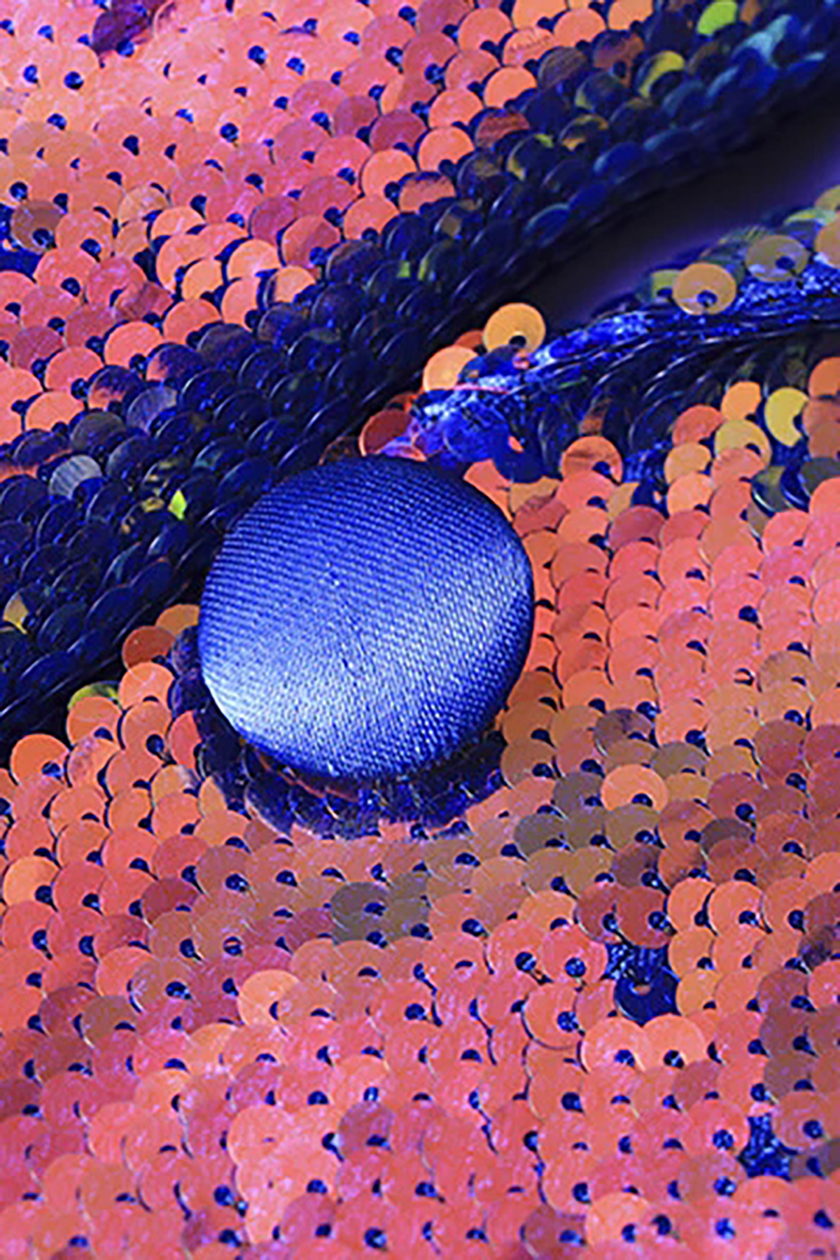 Iridescent Sequin Lapel Collar Long Sleeve Cinch Waist Metallic Party Blazer 1285