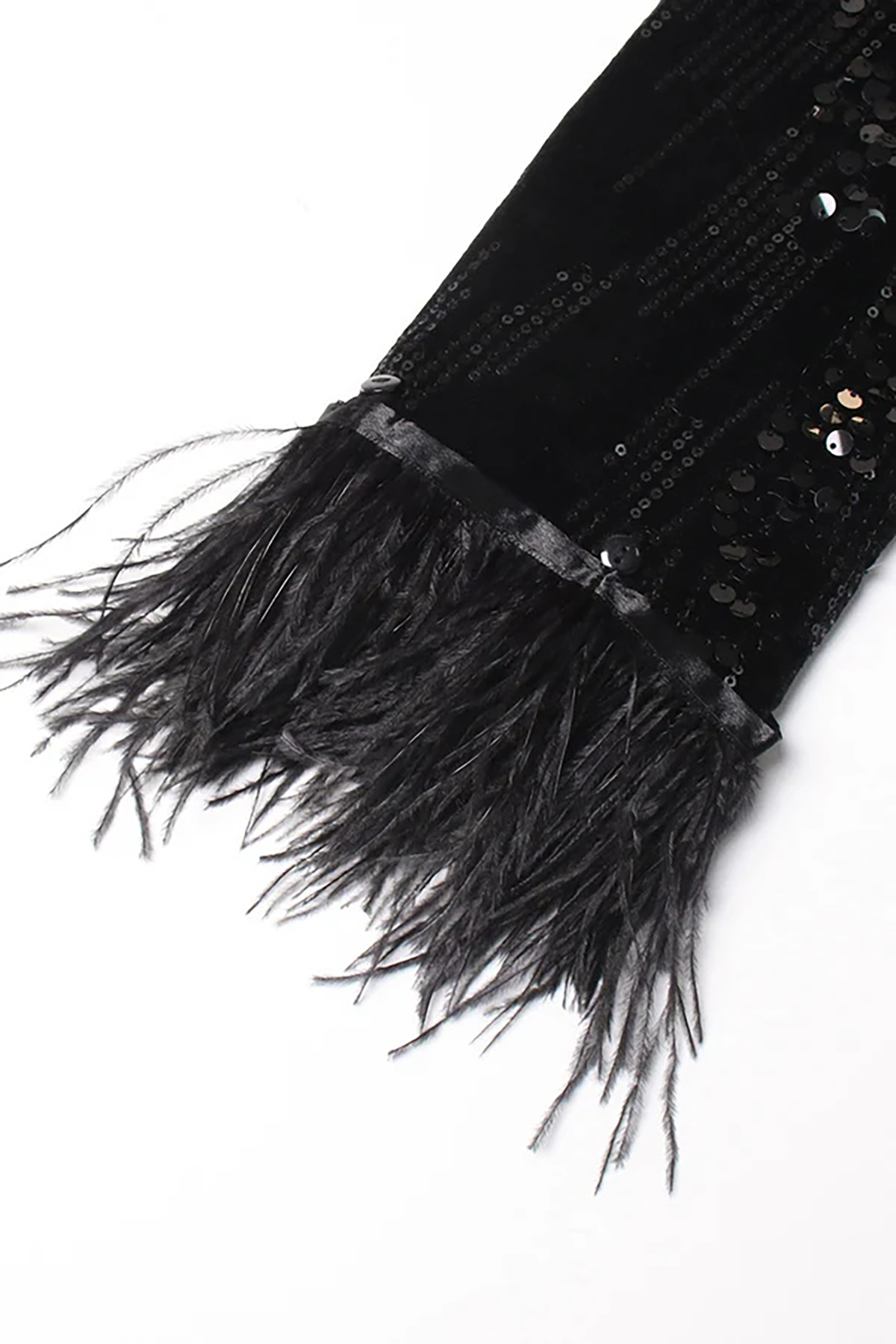 We love making classic women's blazers with contemporary twists. This sparkling embellished blazer is fully coated with sequins, looking gorgeous and will make you the star of the night. Trimmed with faux feathers on the cuffs, this boutique longline suit features a bodycon silhouette, a silk-like satin lapel collar, should-pad long sleeves, two flap pockets, and a single-breasted closure. If you want to stand out on the dance floor, finish your party outfits by pairing it with tonal shorts and strappy stilettos.