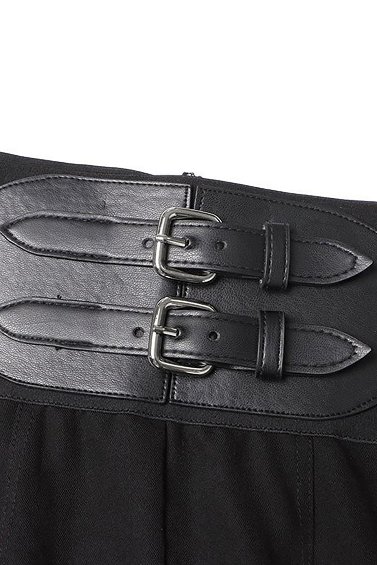 Create a polished and chic look with these full-length trousers! Crafted in pure black, these high-rise pants feature a figure-flattering silhouette. The elastic waistband adorned with metallic details and belted decoration adds sophistication, while the concealed zipper at the back ensures a seamless finish. With side pockets for added functionality and a graceful drape, these hybrid pants from our boutique exude elegance and professionalism for women. Pair them with a silk blouse for a refined office outfit.